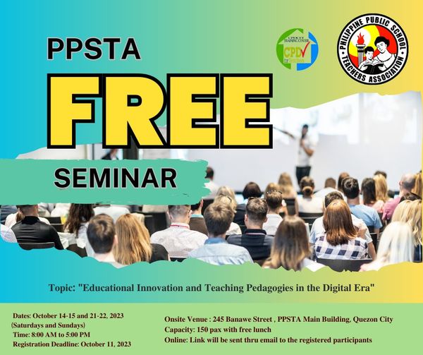 Join us for an enriching learning experience at PPSTA’s four-day free semina, in collaboration with CPDCFT Training Center.